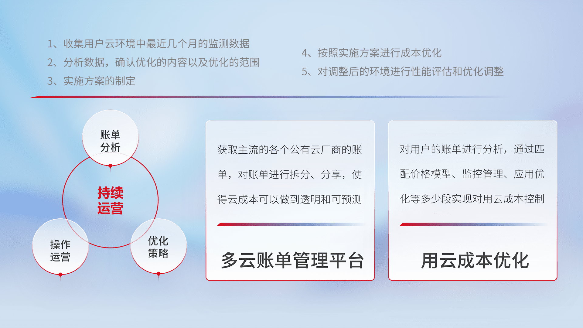 监控业务系统资源开销,,,,对资源的消耗精确计量,,,实现费用的透明化管理,,,,不断提升资源使用率,,调整资源购买方式,,降低资源费用成本,,用云成本可预测、、、用云费用可优化,,,云资源配额有据可依。。